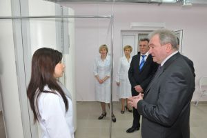 Сергей Антуфьев ознакомился с оснащением амбулаторно-поликлинического отделения, посетил клинико-диагностическую лабораторию и кабинет светолечения, оснащенный немецким оборудованием. Затем Губернатор пообщался с коллективом диспансера и ответил на вопросы, касающиеся социально-экономической жизни Смоленщины.