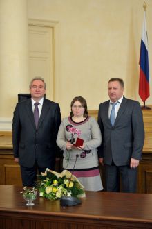 Почетный знак Смоленской области «Материнская слава» имени Анны Тимофеевны Гагариной из рук главы региона получили четыре смоленские мамы: