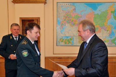 Сергей Антуфьев высоко оценил итоги деятельности смоленских таможенников и вручил Василию Князеву, а также начальнику Стабнинского таможенного поста Олегу Бондареву и начальнику отдела таможенного оформления и таможенного контроля Стабнинского таможенного поста Владимиру Лагутину Благодарственные письма.