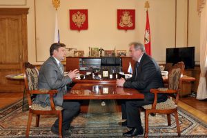 Сегодня Сергей Антуфьев провел рабочую встречу с Губернатором Тверской области Андреем Шевелевым, прибывшим в Смоленск во главе делегации для участия в церемонии подписания плана мероприятий по реализации двустороннего соглашения.
