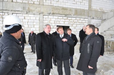 После официальной церемонии подписания Андрей Шевелев в сопровождении Сергея Антуфьева ознакомился со строящимися в Смоленске крупными социальными объектами – физкультурно-оздоровительным комплексом и федеральным медицинским центром травматологии, ортопедии и эндопротезирования.