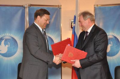 Сегодня Губернатор Сергей Антуфьев и руководитель Федерального агентства по делам Содружества Независимых Государств, соотечественников, проживающих за рубежом, и по международному гуманитарному сотрудничеству Константин Косачёв подписали в Москве Соглашение о взаимодействии Администрации Смоленской области и Россотрудничества.