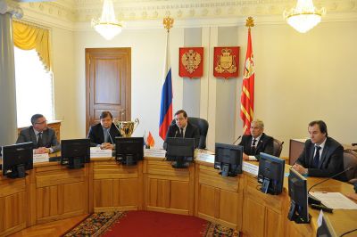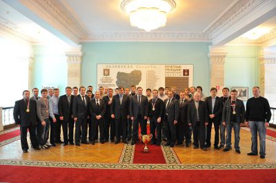 Временно исполняющий обязанности Губернатора Смоленской области Алексей Островский встретился с руководством, тренерским штабом и игроками хоккейного клуба «Славутич», на днях завоевавшими титул чемпионов Российской Хоккейной Лиги.