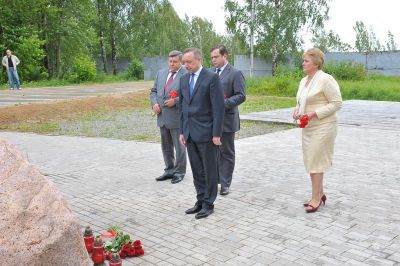 В завершении своего рабочего визита Александр Беглов посетил место крушения самолета ТУ-154М ВВС Республики Польша, где вместе с коллегами возложил цветы к памятному камню.