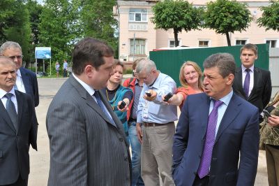 Вице-премьер Дмитрий Козак в сопровождении Губернатора Алексея Островского и других официальных лиц посетил строящиеся и реконструируемые в рамках подготовки к празднованию юбилея объекты.
