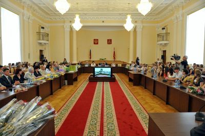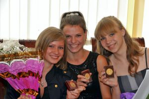 Торжественная церемония вручения медалей выпускникам школ Смоленской области 2012 года продолжилась в большом зале областной Администрации. Награды самым одаренным и целеустремленным ребятам вручили заместитель Губернатора Ольга Васильева, заместитель председателя областной Думы Николай Мартынов. Напутственных слов «золотой фонд» области удостоился от Губернатора Алексея Островского, председателя областной Дума Анатолия Мишнева и главного федерального инспектора в Смоленской области Ольги Окуневой.