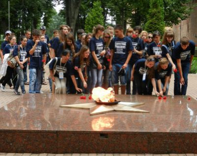 Первая делегация в составе 150 человек из Эстонии и Узбекистана уже прибыла в город. Ребята возложили цветы к Вечному огню и почтили память знаменосца Победы Михаила Егорова.