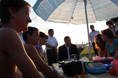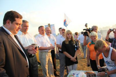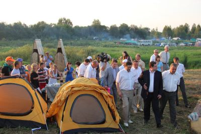 На правом берегу Днепра в 43 километрах от Смоленска собрались более 500 участников – 44 делегации из Белоруссии, Латвии и России. Глава региона ознакомился с обустройством палаточных лагерей районов.