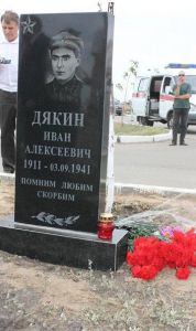 Как установили поисковые отряды, Иван Дякин был призван на военную службу Макаровским РВК (ныне Турковский район) Саратовской области и погиб при защите Соловьевой переправы в 1941 году в возрасте 30 лет. Его родственники до сих пор проживают в Саратове.