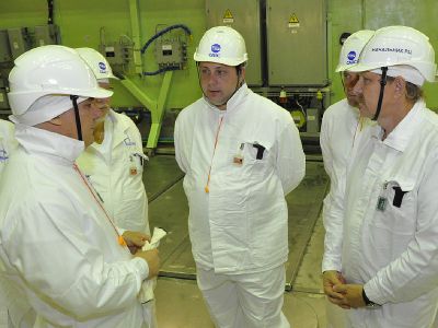 В сопровождении директора предприятия Андрея Петрова Губернатор посетил энергоблок САЭС: блочный щит управления, машинный и реакторный залы.