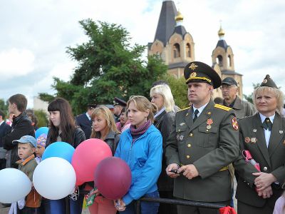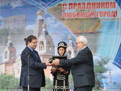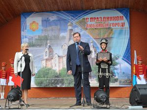 На летней эстраде города Алексей Островский сердечно поздравил десногорцев с праздником, а также в торжественной обстановке передал для хранения в музей капсулу с землей, взятой с поля Лубино Кардымовского района.