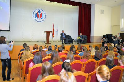 Студенты задавали вопросы, касающиеся сферы образования, пополнения библиотечных фондов, получения востребованной на рынке труда профессии, оплаты труда педагогических работников.