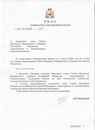 Указ вступает в силу со дня его подписания Губернатором Смоленской области. Полномочия члена Совета Федерации начинаются со дня вступления в силу Указа о его назначении.