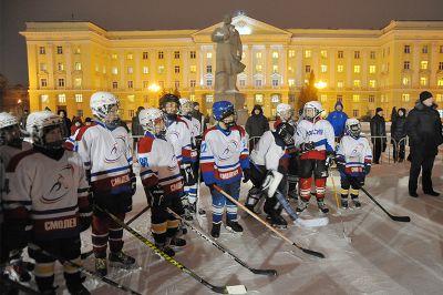 Опробовать лед пришел исполняющий обязанности Губернатора Смоленской области Лев Платонов. «Сегодня поистине праздничный вечер - в самом сердце нашего города-героя Смоленска открыт каток для массового катания. Он открыт для вас, дорогие смоляне. Эта инициатива принадлежала Губернатору Алексею Островскому, решение принималось трудно, потому что надо было привыкнуть к тому, что на исторической площади вдруг появился каток. Этот каток послужит в укреплении нашего здоровья и повысит настроение», - сообщил Лев Платонов на церемонии открытия ледовой площадки.