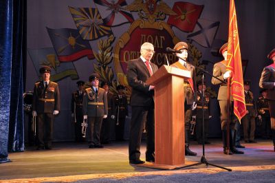 В канун Дня защитника Отечества состоялось торжественное собрание, в котором принял участие заместитель Губернатора - руководитель Аппарата Администрации области Лев Платонов, ветераны, труженики тыла, командование и воины Смоленского гарнизона, командиры воинских частей, все те, для кого защита Родины – не только долг, но и жизненное призвание.