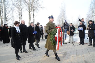 В церемонии приняла участие польская делегация: член совета министров, глава канцелярии председателя совета министров Республики Польша Яцек Чихоцки, министр национальной обороны Томаш Семоняк, заместитель министра МВД Станислав Ракочы, глава бюро охраны правительства Кшиштоф Климек, Чрезвычайный и Полномочный Посол Республики Польша в Российской Федерации Войцех Зайончковски и другие гости. В память о каждом погибшем были зажжены лампады, свечи, возложены цветы.