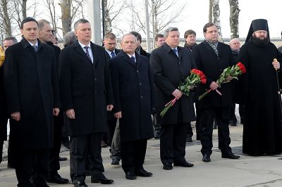 Вместе с тем мы понимаем, что значит для Республики Польша, для всех поляков память о трагедии, которая произошла здесь три года назад. Мы убеждены, что памятник должен быть. На сегодняшний день функционирует Межгосударственная комиссия, и каков будет размер памятника, сколько будет отведено смоленской земли для возведения этого памятника, – решит Межгосударственная комиссия. Я лишь могу говорить о своей позиции и позиции смолян. Как Губернатор я считаю, что в первую очередь нужно учесть мнение жителей региона. Смоляне считают, что нужно обязательно отдать дань уважения погибшей делегации, и памятник должен быть. Но нужно найти баланс между ожиданиями польской стороны и ожиданиями жителей Смоленщины, это тоже предмет работы Межгосударственной комиссии».