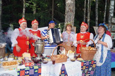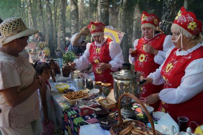 Все желающие могли угоститься у самовара чаем на травах, послушать фольклорные песни, частушки, поучаствовать в народных гуляниях.