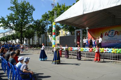 Воспитанники детского реабилитационного центра «Вишенки», являющиеся победителями международных, всероссийских и межрегиональных фестивалей, исполнили песню «Красно солнышко». Примечательно, что все сценические костюмы ребята сделали своими руками. Участников волонтерского лагеря и всех собравшихся поздравили творческие коллективы города Смоленска – хореографический ансамбль «Smile» и ансамбль «Созвучие Алатона».