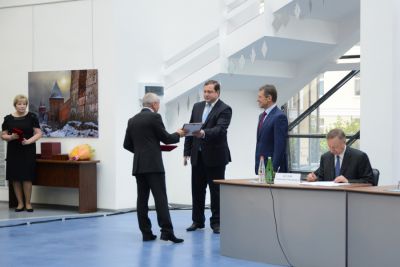 В завершение итогового заседания организационного комитета Дмитрий Козак, Александр Беглов и Алексей Островский выполнили почетную и приятную миссию – вручили Благодарственные письма полномочного представителя Президента России в ЦФО, награды и памятные знаки руководителям организаций и коллективов, особо отличившихся при подготовке к празднованию юбилея города Смоленска.