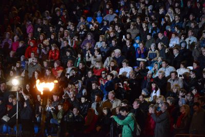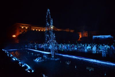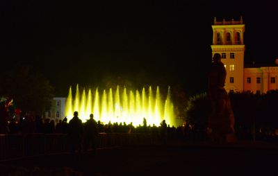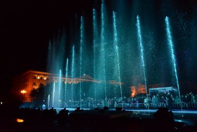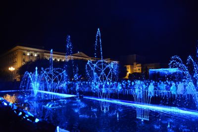 Праздничный вечер был подсвечен огнями мультимедийного шоу фонтанов на площади Ленина. Смоляне и гости города восторженно следили за тем, как фонтаны меняли конфигурацию под музыку по специальной программе.