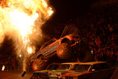Машина, едущая только на двух колесах, чудеса акробатики на несущихся автомобилях и мотоциклах, прыжок каскадера сквозь горящую трубу с крыши автомобиля, «Призрачный гонщик» - горящий «всадник» на охваченном пламенем мотоцикле.
