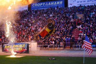 Вечером на стадионе «Спартак» несколько тысяч зрителей смогли увидеть шоу на автомобилях и мотоциклах – шоу Fire Angels Motors.