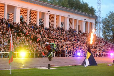 Гости праздника смогли в полной мере окунуться в мир ревущих моторов и уникальных трюков: полет дуэта каскадеров без парашюта с 70-метровой высоты, завораживающее фаер-представление от лучшего огненного театра Москвы «FireAngels».