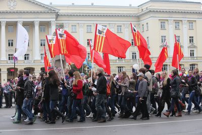 По центральным улицам города к площади Ленина продефилировало замечательное театрализованное шествие «Связь времен», в котором приняли участие коллективы художественной самодеятельности и жители Смоленска.