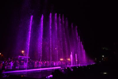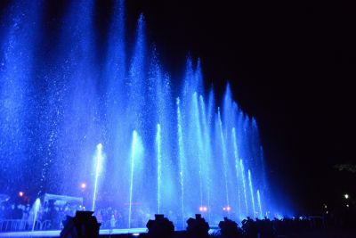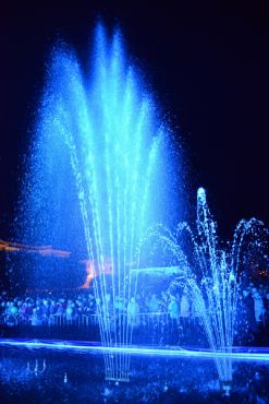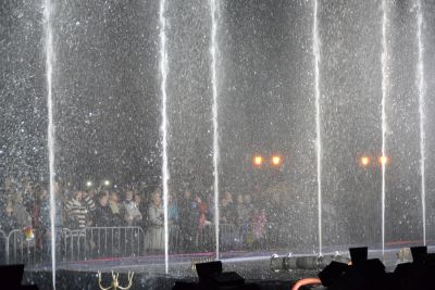 В воздух взметнулись струи воды высотой с трехэтажный дом, подсвечиваемые прожекторами.