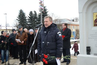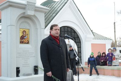Дорогие друзья! Открытие памятного знака – это деятельность ваших современников. Деятельность людей, которые подошли к этому вопросу неравнодушно, и, конечно, мы должны вспомнить и назвать людей, которые внесли больший вклад в это дело. Я бы хотел отметить известного писателя-публициста Юрия Бондаренко – инициатора и основного собирателя знаний об этом факте. И, конечно, мы должны поблагодарить скульптора Салавата Щербакова. Давайте вспомним наших погибших собратьев и будем помнить об этом так, чтобы мы могли передать и нашим детям память о святых подвигах наших предков».