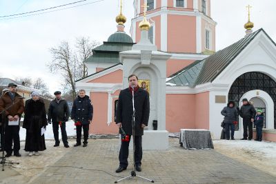 Губернатор Алексей Островский принял участие в торжественной церемонии открытия в центре города Гагарина, у храма Казанской иконы Божией матери, Памятного знака-часовни, посвященного трагическим событиям Отечественной войны 1812 года, когда на месте Старой Смоленской дороги проходящей через Гжатск, были убиты русские солдаты, плененные французской армией.