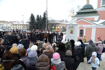Почетное право открыть памятный знак было предоставлено Алексею Островскому и Григорию Ивлиеву. После состоявшегося чина освящения памятного знака участники торжественной церемонии возложили к нему цветы.