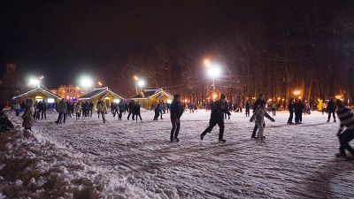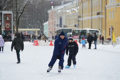 Смоляне и гости города уже приходят на ледовую площадку, на которой установлено дополнительное освещение, играет музыка, обустроены раздевалки и буфет, организовано дежурство медицинского персонала.