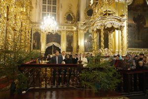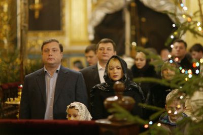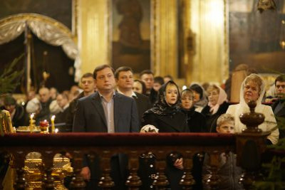 В Рождественском ночном богослужении принял участие Губернатор Смоленской области Алексей Островский с супругой и дочерью.