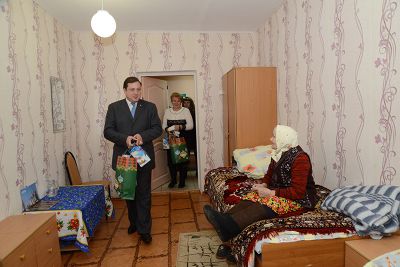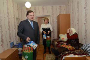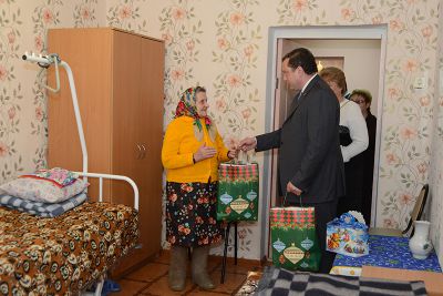 Алексей Островский лично пообщался с каждым проживающим в комплексном центре, для каждого нашел слова поддержки и участия. Губернатор тепло поздравил пожилых смолян с Рождеством Христовым и вручил им подарки – теплые пледы.