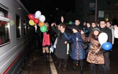 С железнодорожного вокзала в Москву 14 февраля в 22:59 отправился поезд с 10 детьми-участниками Сводного хора, которые споют на закрытии XXII Зимних Олимпийских игр в Сочи. Доброго пути и успешного выступления им пожелали представители региональной администрации, родители, преподаватели и друзья.