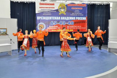 С яркой поздравительной программой для выпускников РАНХиГСа выступили студенты Смоленского государственного института искусств.