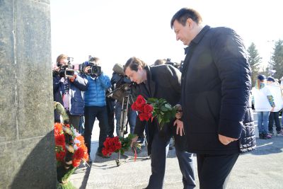 Участники митинга возложили цветы к памятнику Ю.А.Гагарину. Также были возложены венки, букеты и корзины цветов на могилы родителей, к памятнику матери космического первопроходца - Анне Тимофеевне.