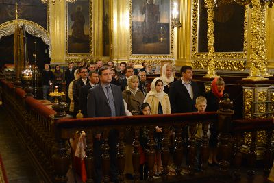 Службу провел Епископ Смоленский и Вяземский Исидор, тепло поздравивший духовенство и прихожан со светлой Пасхой. Пасхальное богослужение посетил Губернатор Алексей Островский вместе с супругой и дочерьми.