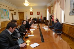 Глава региона Алексей Островский встретился с руководителями средств массовой информации и ответил на их вопросы, посвященные двухлетию работы на посту Губернатора Смоленской области.