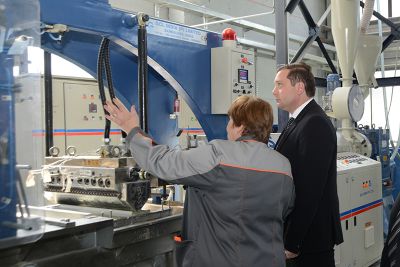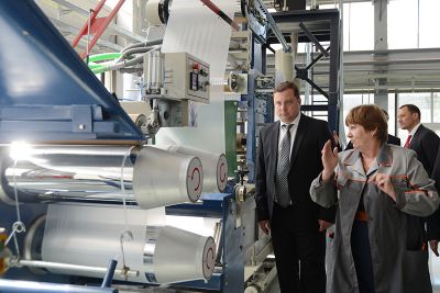 После заинтересованной беседы с коллективом предприятия, Алексей Островский совершил экскурсию по цехам. Глава региона осмотрел склад готовой продукции, посетил медико-санитарную службу ОАО «Дорогобуж», а также ознакомился с многообещающей деятельностью нового производства мягких контейнеров (биг-бэгов) на заводских площадях. Цель проекта: обеспечение ОАО «Дорогобуж» современной и наиболее востребованной как на внутреннем, так и на внешнем рынках упаковочной тарой - мягкими специализированными контейнерами. Мощность производства – 1,6 миллионов штук в год.