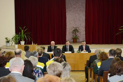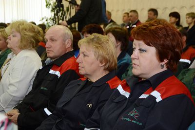 Далее глава региона встретился с трудовым коллективом завода. «Мы прекрасно осознаём, что для Смоленской области и для Дорогобужского района значит работа предприятия. Администрация области связывает большие надежды с перспективами завода», – отметил Алексей Островский и, кратко проинформировав заводчан относительно перспектив развития Смоленщины, ответил на их вопросы, касающиеся будущего области и района.