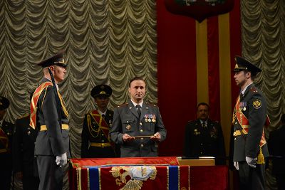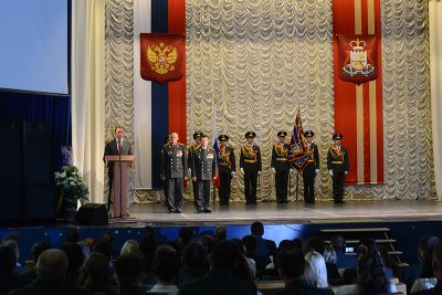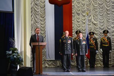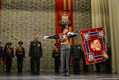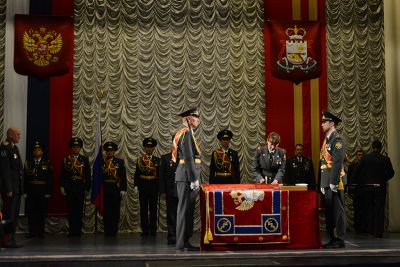 В зале Культурно-досугового центра «Губернский» состоялась торжественная церемония крепления к древку полотнища Знамени регионального Управления Федеральной службы РФ по контролю за оборотом наркотиков и его вручения начальнику Управления Александру Митюкову.