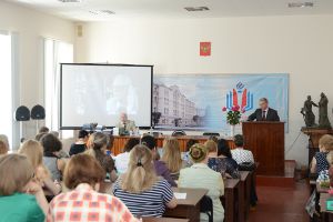 Председатель Чтений, доктор педагогических наук, профессор Геннадий Меркин презентовал Смоленской областной универсальной библиотеке имени А. Т. Твардовского книги с автографами Бориса Васильева. Основу литературного музея составят экспонаты от правоопреемников писателя.
