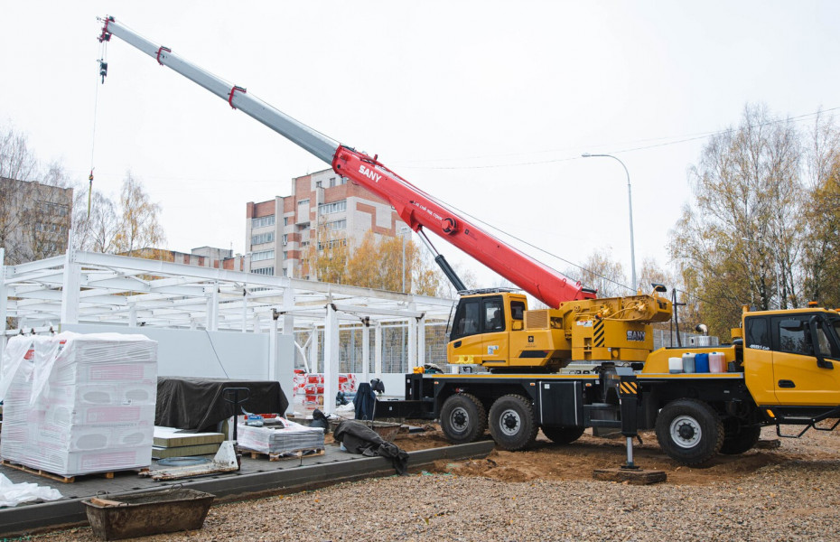 Он отметил, что сейчас строители ведут монтаж металлоконструкций каркаса здания, выполняют устройство покрытия футбольного поля, ограждения открытых площадок и фундамента под баскетбольные стойки. Параллельно с этим в уличной части устанавливается оборудование для её дальнейшего подключения к общей электронной системе спортивного комплекса. Больше чем наполовину завершено благоустройство территории будущего фиджитал-центра.
