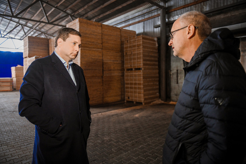 Первой точкой визита стало одно из крупнейших производств деревянных поддонов в России – ООО «Велес Пак», которые широко используются для хранения и транспортировки товаров. На производстве в Сафоновском районе установлены итальянские и шведские линии по сборке поддонов, которые позволяют производить 250 тыс единиц в месяц.