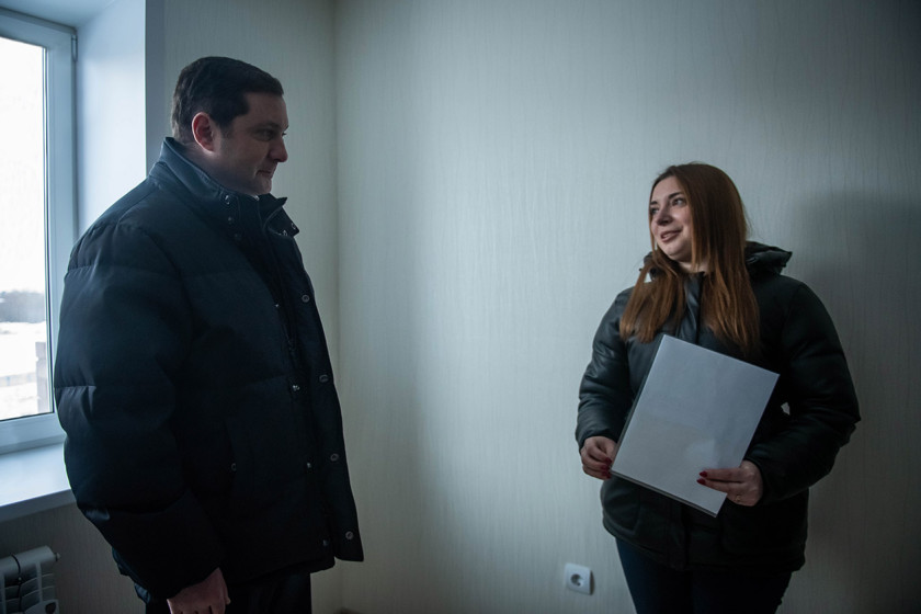 В ходе поездки по городу Смоленску Губернатор Алексей Островский вручил ключи от квартиры смолянке Анастасии К., которая получила в декабре жилье как сирота в рамках областной программы.