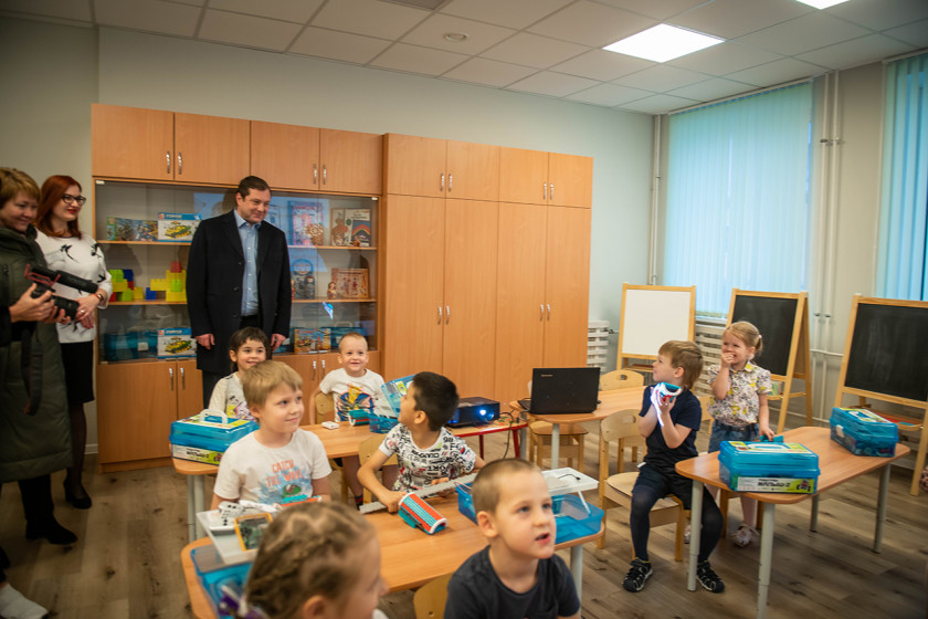 Губернатор ознакомился с тем, как проводятся индивидуальные занятия с детьми, посетил репетицию в театральной студии, а также совместное занятие с обучающимися 7-й школы, на которых дети готовились к конкурсу по противопожарной безопасности.