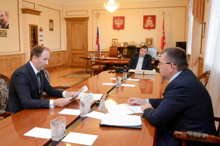 Губернатор Алексей Островский провел рабочую встречу с руководителем Смоленского регионального отделения АО «Россельхозбанк» Алексеем Сенокосовым, в ходе которой стороны обсудили перспективы сотрудничества, направленного на развитие и поддержку агропромышленного комплекса Смоленщины, а также участие финансово-кредитной организации в реализации инвестиционных проектов на территории области.